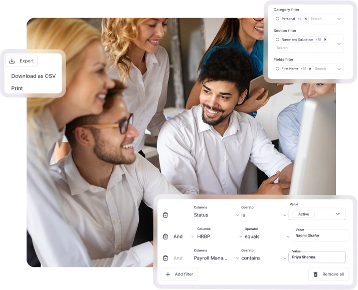 Thrivea provides smart views that allow you to filter and combine any employee data, so you can create exactly the perspectives you need—quickly and without technical expertise.