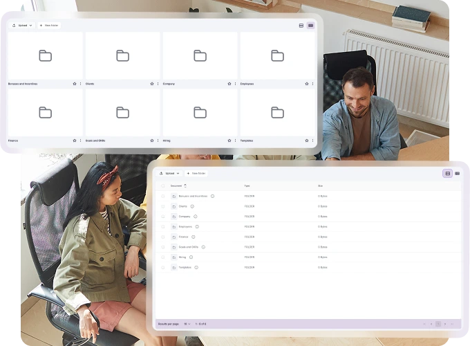 Visualize your documents in a way that makes sense for you. Switch between board views for process tracking or list views for structured audits. Whether your HR team prefers a Kanban-style layout or a classic file tree, Thrivea adapts to your workflow.