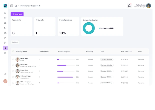 Managers can easily track goals, collect feedback, and recognize achievements—all in a single platform.